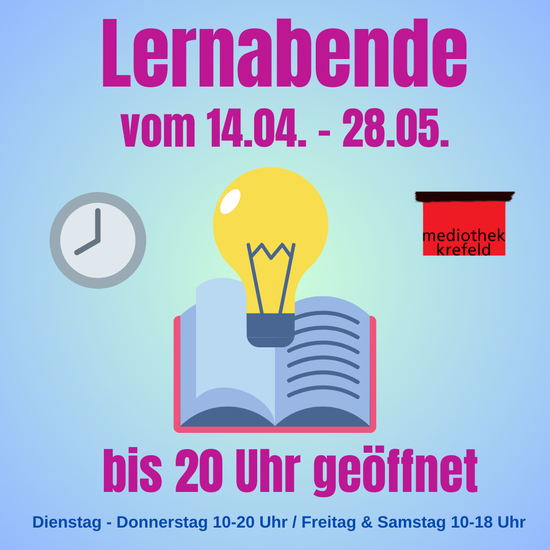 besuchen Sie uns im Herzen der City. Die Mediothek Krefeld ist ebenso Lern- wie Begegnungsort. Das 2008 eröffnete Gebäude zeichnet sich durch seinen umfangreichen Medienmix (vom Buch bis zum Konsolenspiel) und seine hohe Aufenthaltsqualität aus.