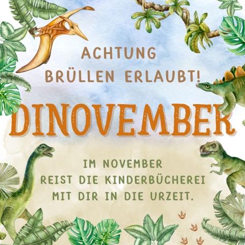 Feier mit uns die ultimative Party! Es wird getanzt, gespielt, gebastelt und noch vieles mehr. Außerdem werden die ausgelosten Gewinner*innen der Dinovember-Rallye prämiert. Wenn du willst, zieh ein Urzeit-Kostüm an.